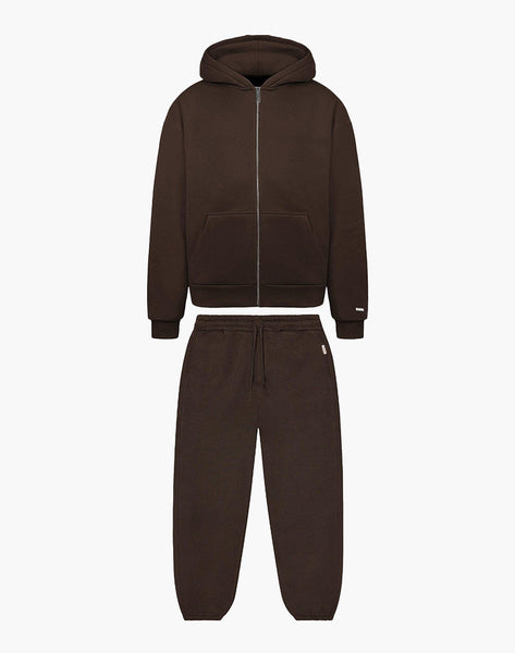 BASIC ZIPPER + BASIC JOGGER (BROWN) Tracksuits Statement Clo